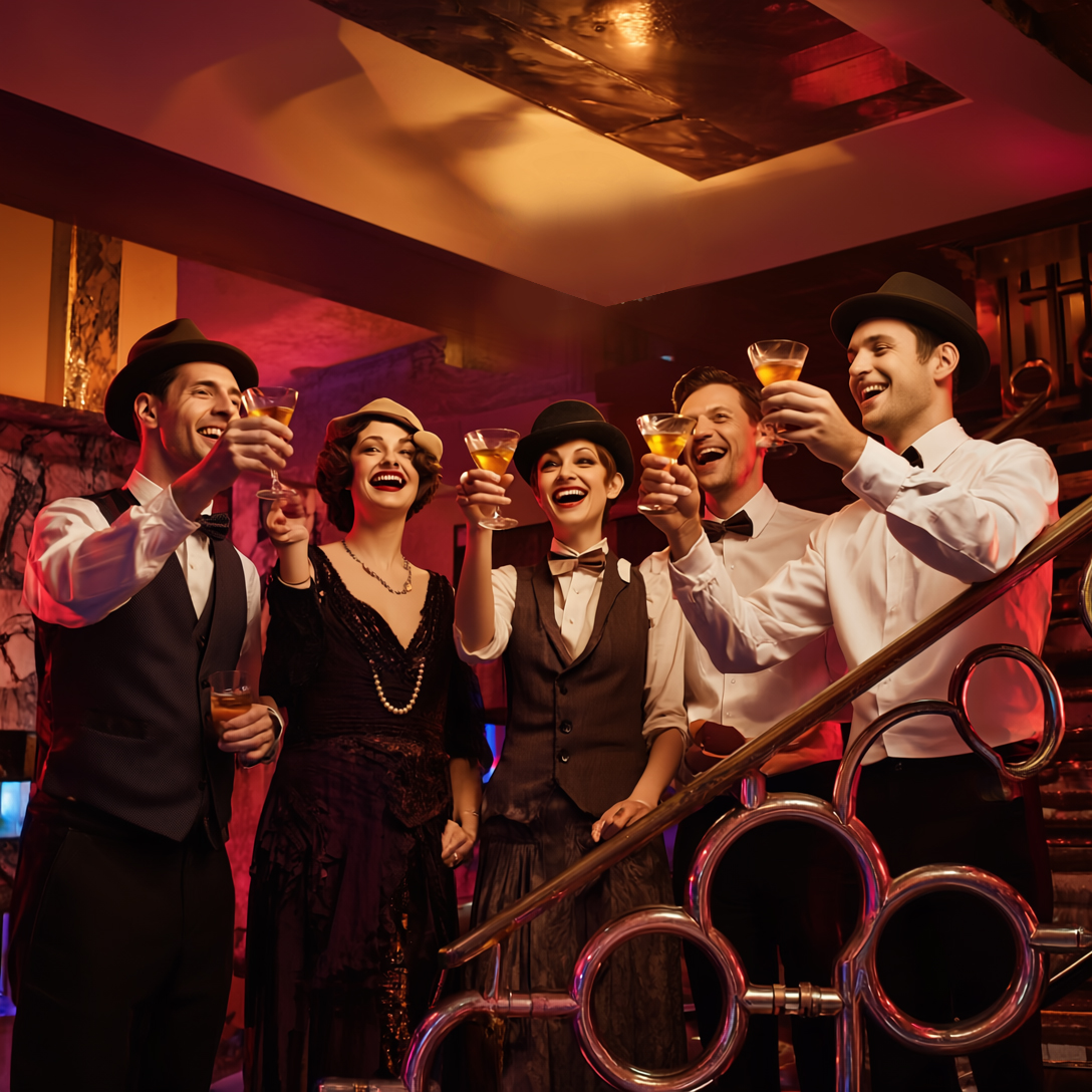 Disfruta de una cena inolvidable acompañada de un show en vivo que te transportará a la época del jazz y la prohibición. Relájate entre risas, juegos y un toque prohibitivo, todo envuelto en un halo de secretismo.