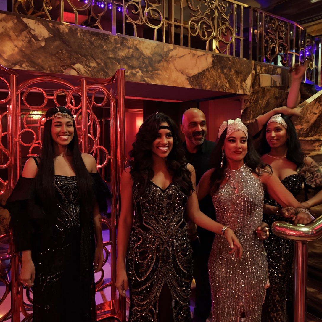 Ven a celebrar tu cena de empresa, cena de amigos o cena de Navidad en nuestro Dinner Show ambientado en el Chicago de los años 20, experimenta una noche en un local clandestino de Chicago donde impera la ley seca, donde las leyes se impusieron para ser violadas, solo aquí podrás pecar, solo aquí en el velvet diamont. En el que solo podréis acceder con contraseña, pujar en una subasta por el diamante rojo y experimentar una cena inmersiva e interactiva con nuestro Dinner Show.